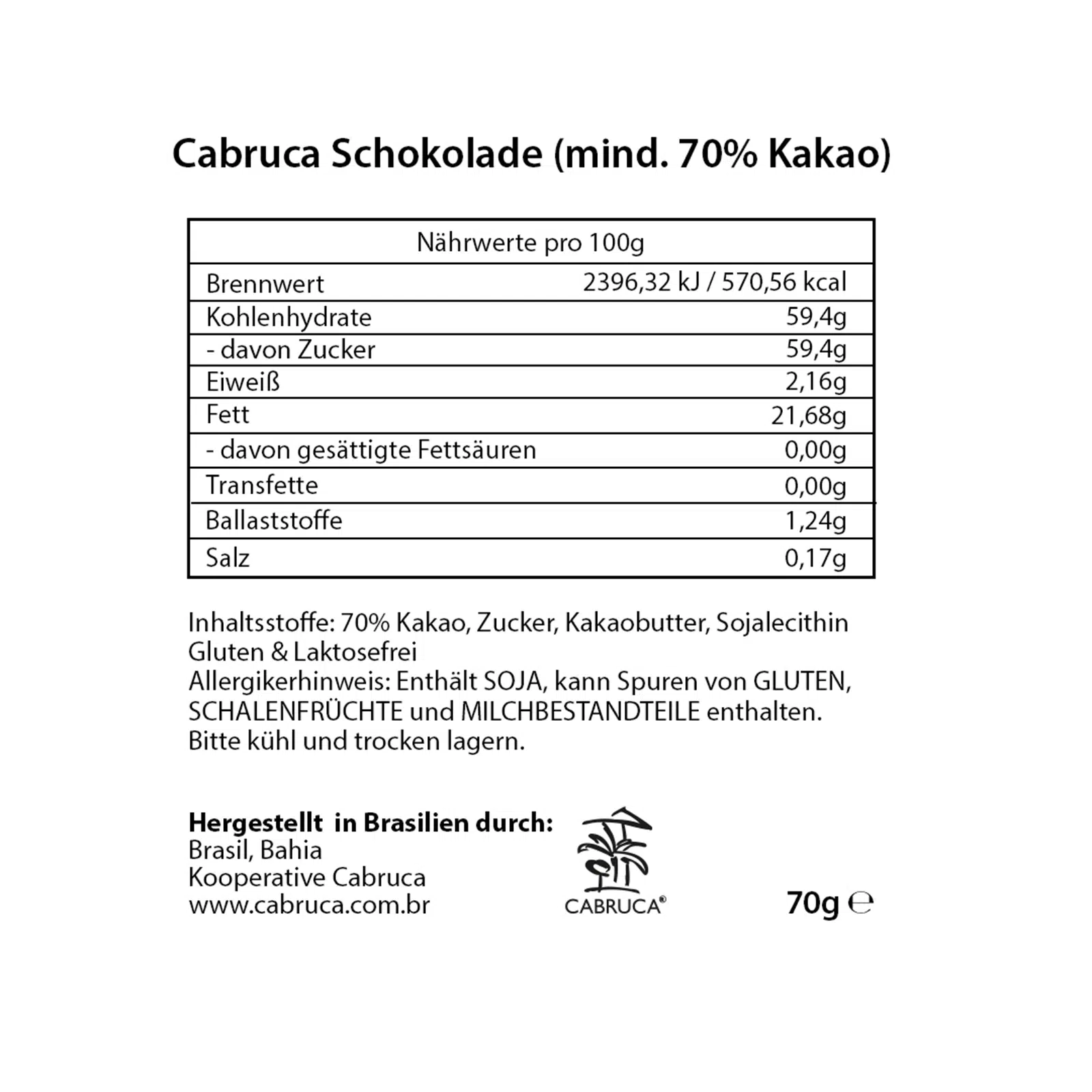 CABRUCA CHOCOLATE – 3 bars á 70g