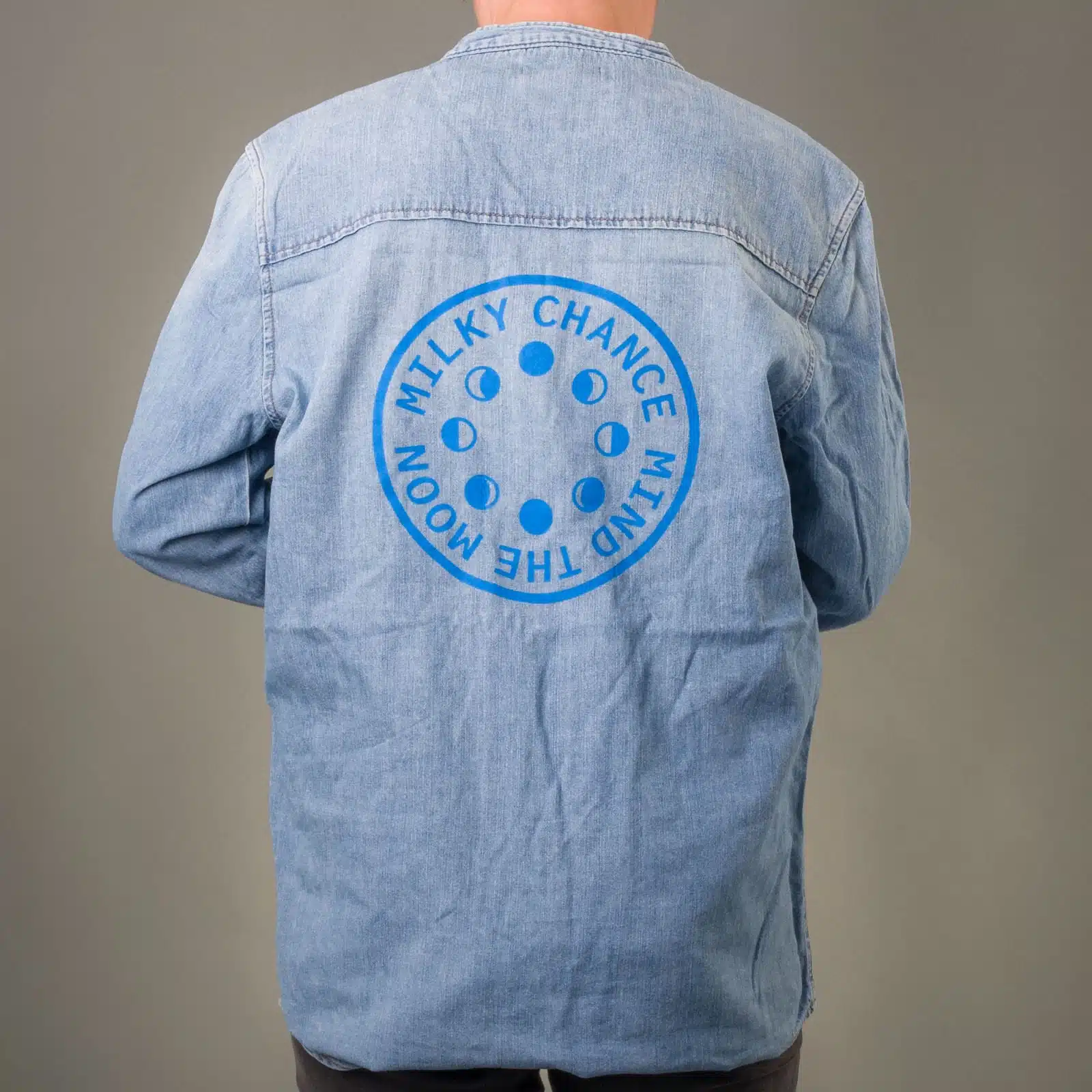 1x Unisex denim shirt, handprinted live on tour in Europe. Size: M